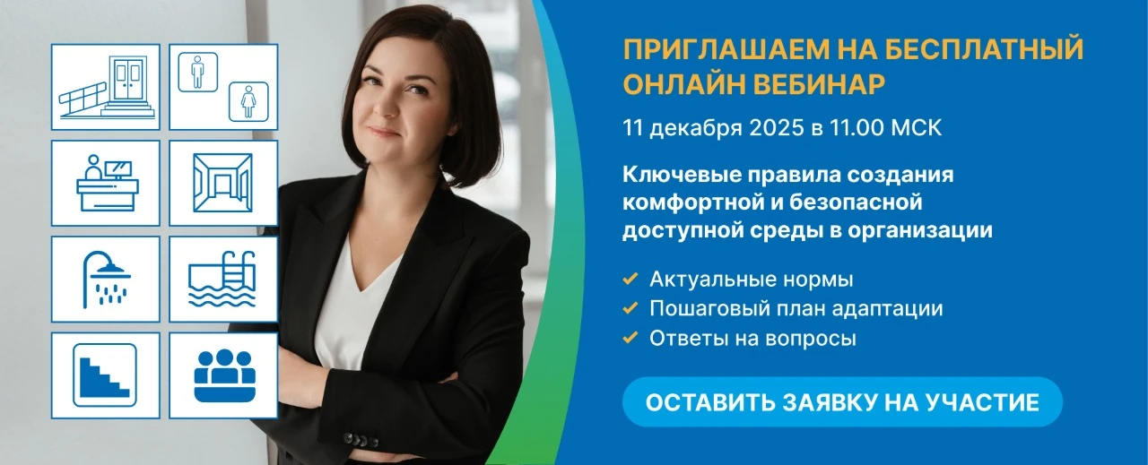Также на безвозмездной основе мы популяризируем тему правильной адаптации учреждений для МГН - создаем методические рекомендации, проводим вебинары и офлайн семинары, формируем базу типовых нормативных решений с наглядным и понятным представлением информации. В месяц мы проводим более 1000 индивидуальных консультаций по вопросам оснащения оборудованием для МГН. Если у вас есть задачи по нашему профилю - обращайтесь! Мы вникнем в вашу ситуацию, зададим несколько уточняющих вопросов и предложим оптимальные решения с учетом специфики вашей деятельности, бюджета и сроков.