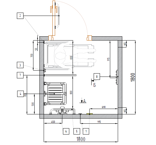 Габаритные размеры помещения: 1,8 х 1,8 м.
