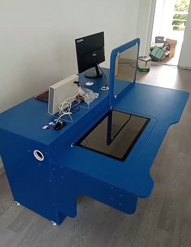 - Стол ученика — оборудован сенсорным экраном 25 дюймов с технологией Multi Touch System, обеспечивающей чувствительность к множественным касаниям.