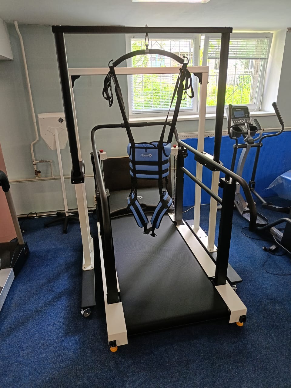 🔹 Подвесная реабилитационная система с беговой дорожкой (тредмил медицинский) с биологической обратной связью — для тренировки ходьбы и разгрузки веса тела с мониторингом. Используется для реабилитации после инсультов, восстановления после травм, при заболевании суставов и заболеваниях сопровождающихся мышечной слабостью и расстройством координации движения.