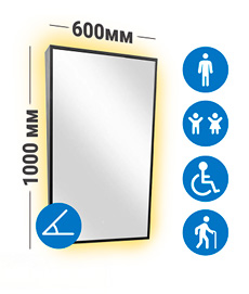 - Зеркала с подсветкой имеют сенсорную кнопку включения на зеркальном полотне.
