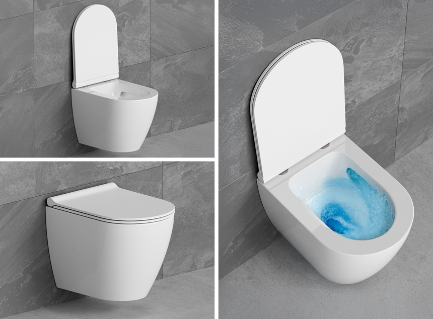 - Безободковый дизайн и технология смыва «Торнадо». Гигиена, тщательное очищение при экономии воды, снижение риска засоров