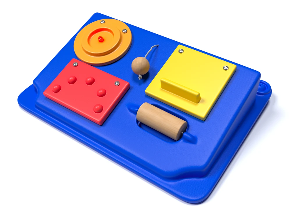 5-ти функциональный развивающий центр создан с целью раннего развития у детей от 3-х лет; также его можно использовать для обучения детей с задержками в развитии. Устройство имеет пластиковый корпус и 5 переключателей для активации различных функций (звуковое сопровождение, вибрация, световой эффект). Изготовлено из высококачественного ударопрочного пластика, имеет обтекаемые плавные формы без острых краёв и углов.
