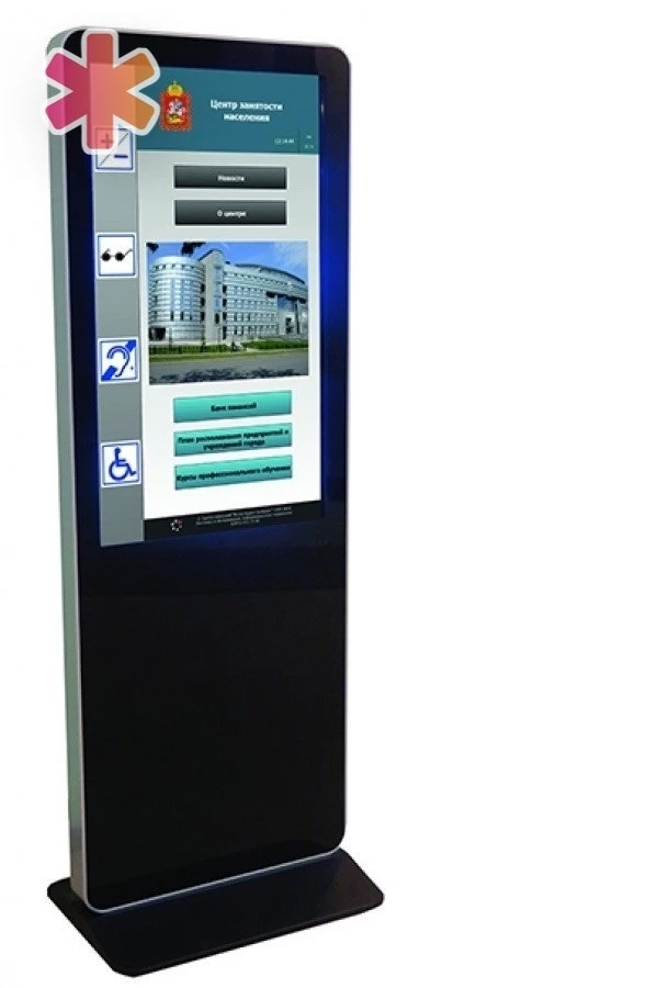 Информационный терминал ISTOK 55Р с плоским ЖК-экраном 55 дюйма (формат изображения 16:9) является полным решением, состоящим из антивандальной сенсорной панели 55, вмонтированной в стальной корпус. Этот терминал разработан с учетом эргономики для маломобильных граждан, включая инвалидов-колясочников, и предназначен для широкого использования в музеях, кинотеатрах, торговых центрах, выставках и других общественных местах. Он также оснащен встроенной индукционной петлей для людей с нарушениями слуха и имеет функцию текстофона.