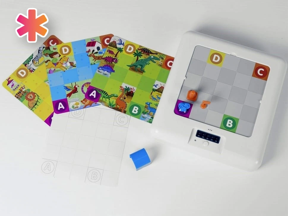 Устройство знакомит детей с принципом составления алгоритмов. Просчитывая наперед маршрут, который должна пройти фигурка по магнитной платформе, ребенок учится пространственному мышлению, стратегическому планированию и развивает логику.