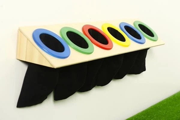 Организатор игры, заранее помешает в мешочек-рукавицу различные предметы по одному в каждую ячейку, предлагает ребенку просунуть руку во внутрь и определить вслепую на ощупь спрятанный в ячейке предмет.