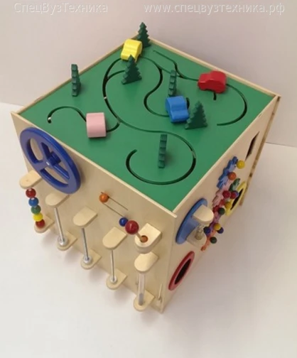 Кубик предназначен для развития тактильных ощущений, мелкой моторики, воображения и зрительной стимуляции. Изделие представляет собой куб с пятью многофункциональными гранями, с яркими, разноцветными элементами различных размеров и форм. Форма изделия позволяет увлечь одновременно нескольких детей.