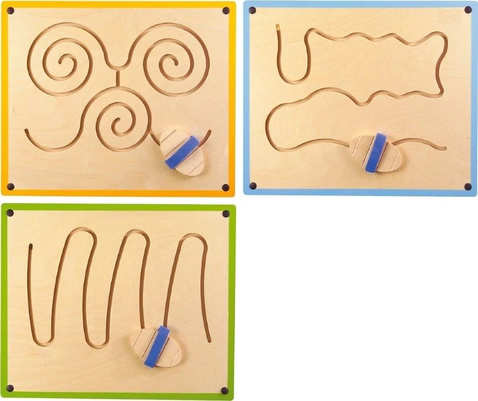 Модули отвечают за развитие мелкой моторики, двигательной активности, координации движения, концентрации у детей начиная с 3-х лет. Изделия выполнены из натуральных материалов и имеют пазы различной формы, в которых установлены бегунки с застежкой. Суть процесса состоит в том, чтобы ребенок одел бегунок на руку или ногу и осуществлял движение от старта к финишу.