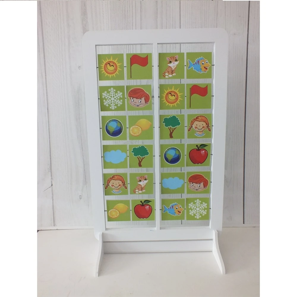 Игровой модуль состоит из 24 вращающихся блоков с красочными картинками. Ребенок должен, вращая блоки, найти для каждого из них пару. Игра позволяет тренировать память.