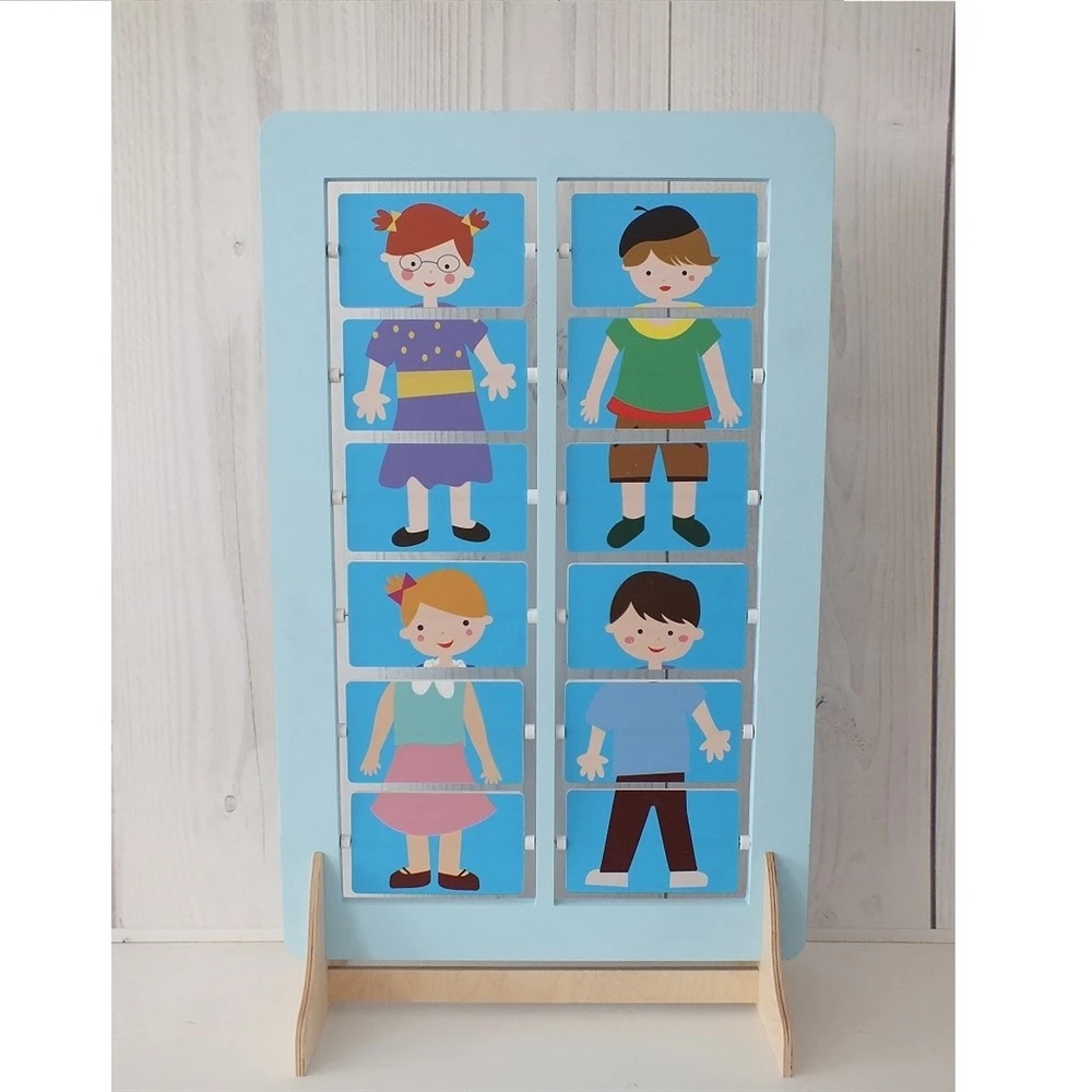 Игровой модуль это 12 вращающихся блоков с яркими принтами, которые составляют 8 персонажей из 3 частей каждый. Измени верх, низ или середину для получения идеального героя!