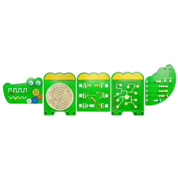 Настенная тактильно-развивающая панель Крокодил "Дилли" станет ярким решением для детских учреждений. Она развивает логику, моторику, умственные способности, терпеливость, целеустремленность и многие другие полезные навыки. Этот забавный и дружелюбный крокодил отлично впишется в интерьер и оживит унылые коридоры, а также заменит до 20 игрушек. В Крокодил "Дилли" входит 5 развивающих панелей с разным набором манипуляторных действий для малышей разного возраста.