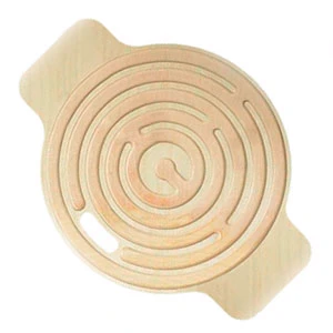 Представляет собой доску из высококачественной многослойной березовой фанеры. В доске отфрезерован паз сложной конфигурации, по которому можно передвигать шарик. Для того, чтобы доску-лабиринт можно было использовать как балансир, в центре тыльной стороны доски установлена полусфера.