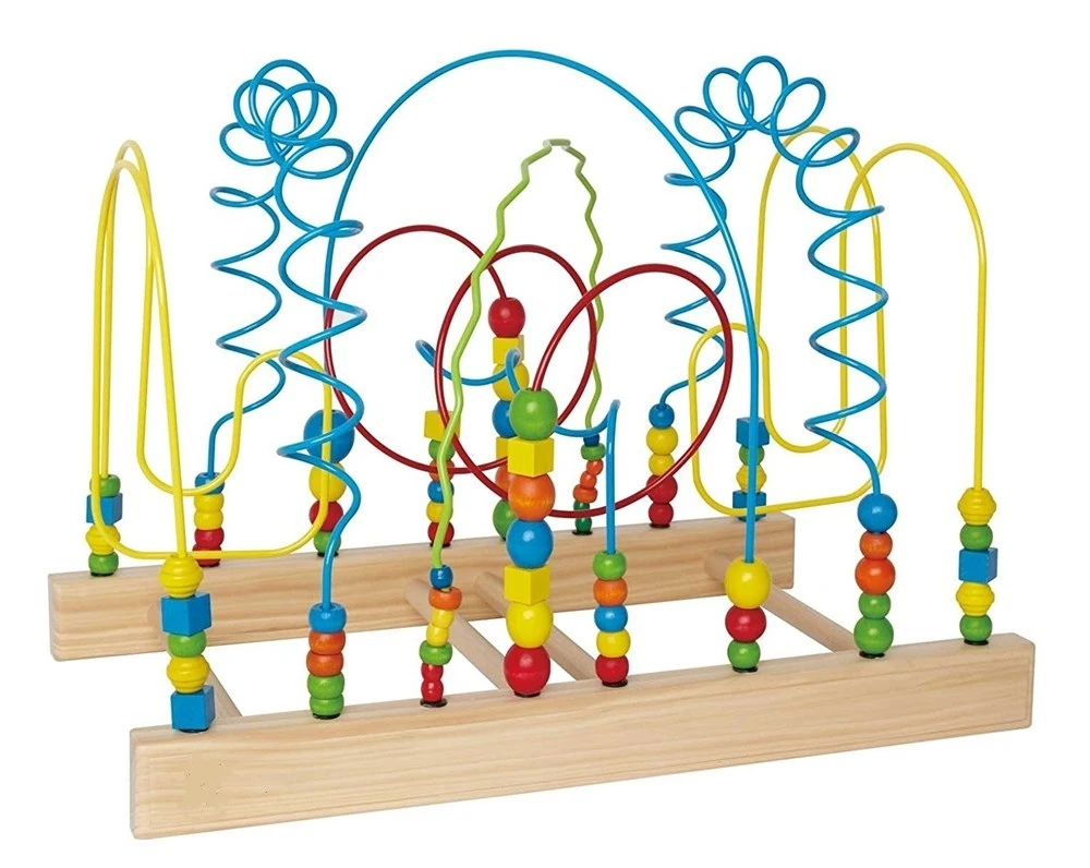 Передвигая бусинки, малыши развивают моторику, логическое мышление, внимательность и координацию движения, знакомятся с различными цветами, и учаться их различать. Проволоки статичны, сгибать их нельзя. По каждой проволоке можно перемещать деревянные фигурки. Фигурки разного цвета и формы (бусинки, овалы. кубики). Мелкие детали не снимаются. Игру можно привязать к какому нибудь сюжету.