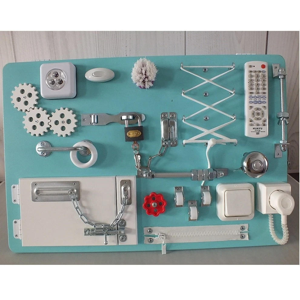 Бизиборд изготовлен из фанеры Высшего сорта ФК (без применения фенолформальдегидного клея), окрашены экологически безопасными красками на водной основе, без острых краев.