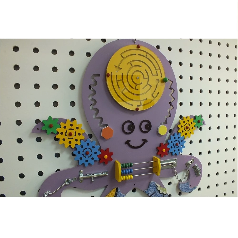 Бизиборд "Осьминого" станет отличным решением для оформления интерьера детского сада. Качественная панель с хорошо продуманным наполнением привлечет к себе всеобщее внимание. Панель выполнена в виде морского обитателя "Осьминога", с расположенными на ней элементами: