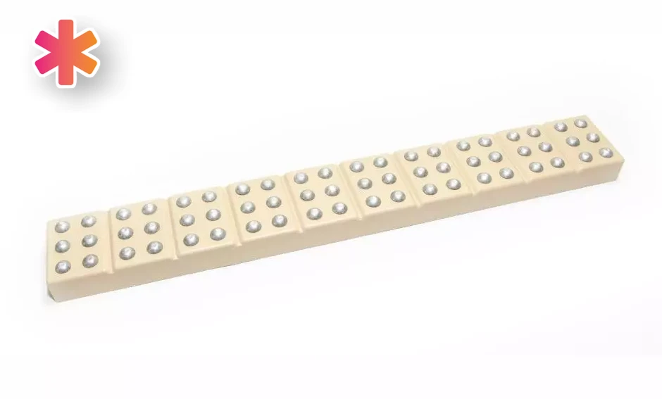 Предназначена для обучения системе Брайля. С помощью штифтов на планке можно производить набор цифр, букв и слов.