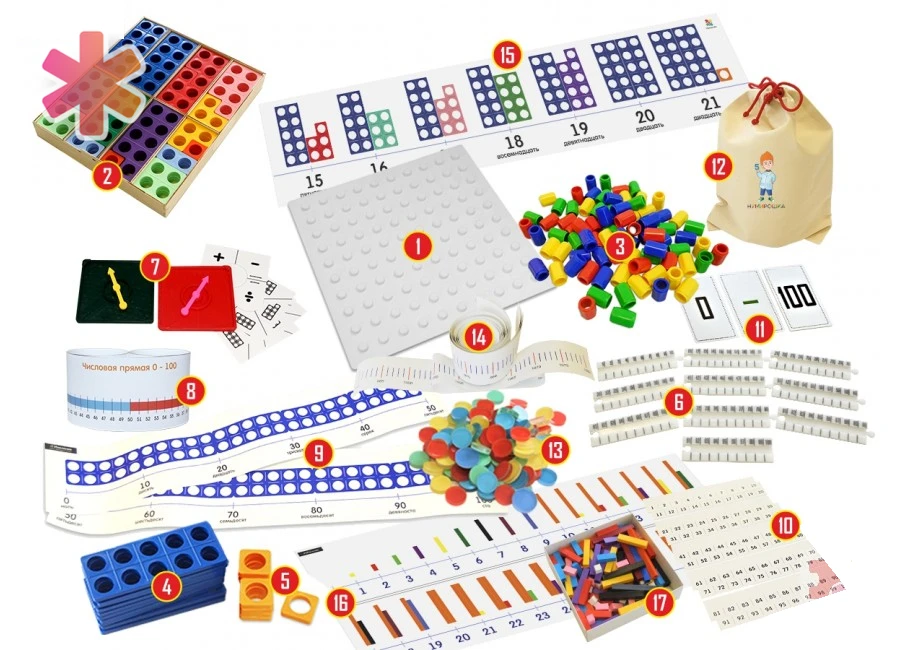 Базовый набор Нумирошка для индивидуальных занятий с детьми 7-9 лет – хороший выбор для детского сада или оздоровительного центра, где занятия проводятся в группе детей. Данная система поможет детям обучиться базовым математическим навыкам, а также развить усидчивость, мышление, тактильность.