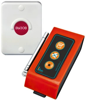 Кнопка вызова помощника БТ310. В комплекте: 1 кнопка вызова персонала, приемник вызовов. Кнопка вызова персонала всепогодная, из ударопрочного пластика с креплением на саморезы или скотч. Приемник стационарный со звуковой и световой индикацией, компактный, работает от сети.
