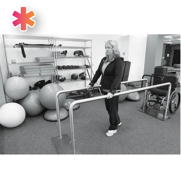 Простые реабилитационные брусья для использования в помещениях, а также не улице. Предусмотрена регулировка по высоте (болты). В базовой комплектации ширина не регулируется. Материал перекладин - нержавеющая сталь.