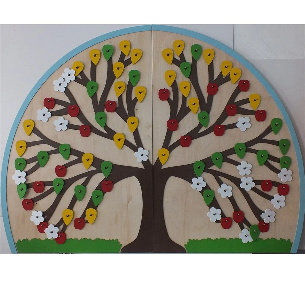 Панель с имитацией времен года состоит из двух частей, что позволяет крепить ее как на одной стене, так и в углу. 95 листьев и цветов, входящих в комплект, предназначены для развития мелкой моторики, а также для изучения природных сезонов.