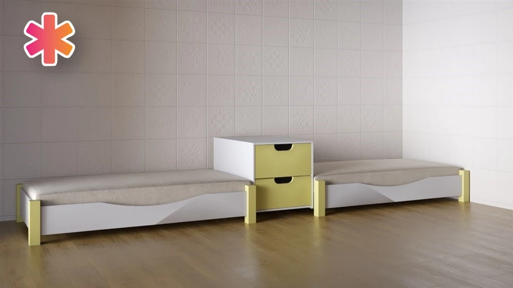 Кровать детская двухместная «Луна» предназначена для детей от 3 до 10 лет. имеет 2 спальных места, между которыми есть небольшая тумбочка с 2-мя ящичками. Выполнена в нейтральной цветовой гамме, что позволяет использовать ее в помещении с любым интерьером. Конструкция кровати надежна и прочна – это гарантирует безопасную эксплуатацию. Кровать представленной модели выполняет роль спального места в группах детских садов, яслях. При помощи комплекта таких кроваток можно стильно и современно оформить спальную комнату для детей.