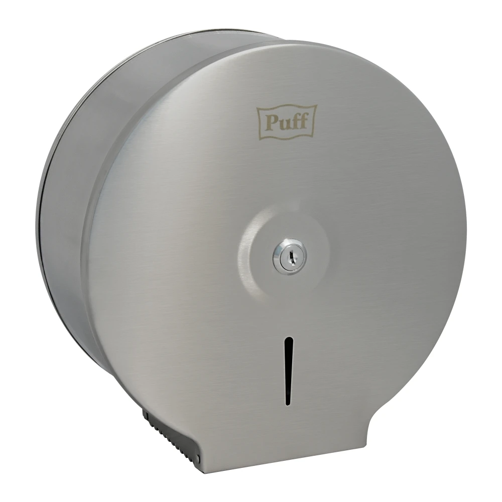 Диспенсер для туалетной бумаги из ударопрочной стали 201 для оснащения санузлов и туалетных комнат. Расходные материалы: диаметр рулона до 240 мм Диаметр втулки (мм): 38 и 63