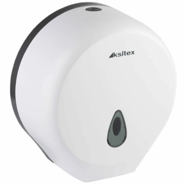 Диспенсер для рулонной туалетной бумаги выполнен из ударопрочного пластика, устойчивого к повреждениям и рассчитанного на длительную эксплуатацию. Корпус закрывается на замок, что обеспечивает защиту расходного материала и удобство обслуживания