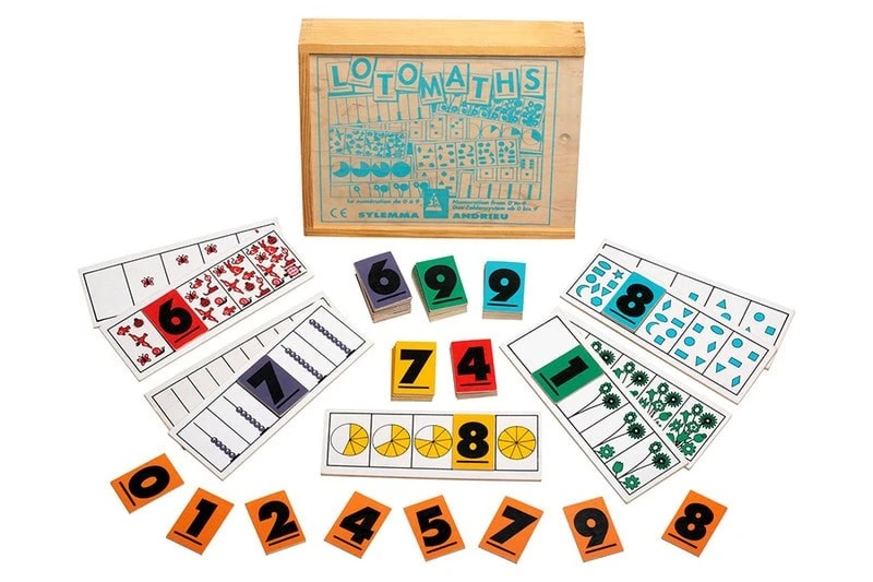 Счетные фигуры и соответствующие им цифровые карточки окрашены в 6 основных цветов: красный, оранжевый, зеленый, голубой, фиолетовый, желтый.