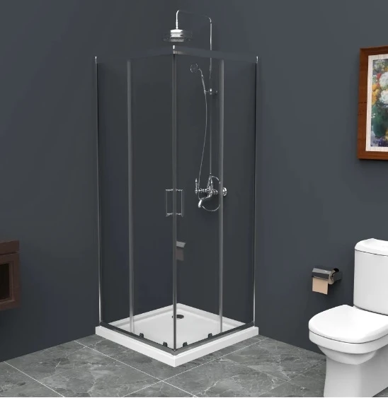 Душевой уголок изготовлен по стандарту из прозрачного, закаленного, травмобезопасного стекла толщиной 5 мм. Душевой уголок выполнен в форме квадрата с двумя раздвижными дверьми с шириной входа 57 см. Изделие имеет рамную конструкцию, усилено верхним и нижним профилем. Профиль изготовлен из полированного алюминия, не окисляется и не подвергается коррозии. Открывание и закрывание дверей происходит за счет двойных роликов которые рассчитаны на 40 000 циклов. Душевой уголок может устанавливаться как на поддон, так и на плитку.