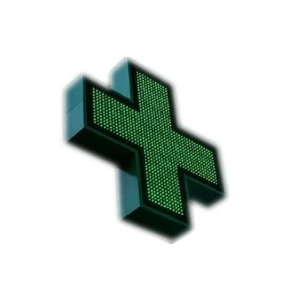 Двухсторонний световой маяк в виде креста, используется для аптек. Имеет встроенные датчики температурного режима и времени, а также крепежи в виде кронштейнов. Последние позволяют закрепить маяк перпендикулярно помещению или на крышу. Функционирует при температуре от -40 до +50 градусов.