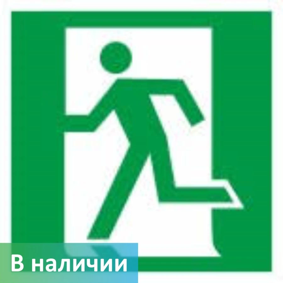 Знак безопасности обозначающий расположение эвакуационного выхода. Способ крепления — двухсторонний скотч. Изделие выполнено в соответствии с требованием ГОСТ Р 12.4.026-2015.