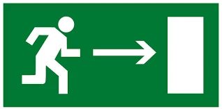 Знак безопасности для обозначения направления к эвакуационному выходу. Способ крепления — двухсторонний скотч. Изделие выполнено в соответствии с требованием ГОСТ Р 12.4.026-2015.