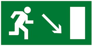 Знак безопасности для обозначения направления к эвакуационному выходу. Способ крепления — двухсторонний скотч. Изделие выполнено в соответствии с требованием ГОСТ Р 12.4.026-2015.