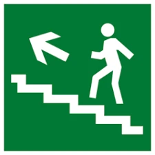 E 16 Направление к эвакуационному выходу по лестнице вверх, налево