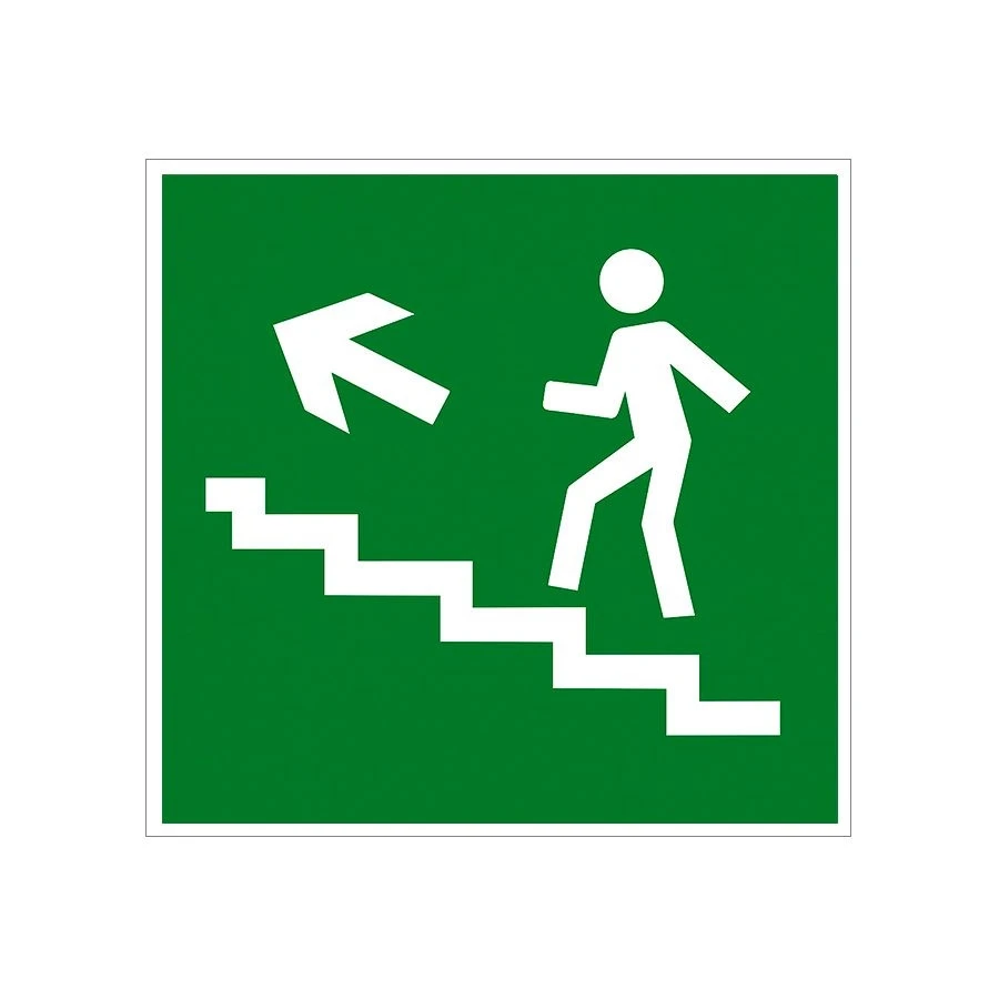 E16 Направление к эвакуационному выходу по лестнице вверх (налево), ПВХ