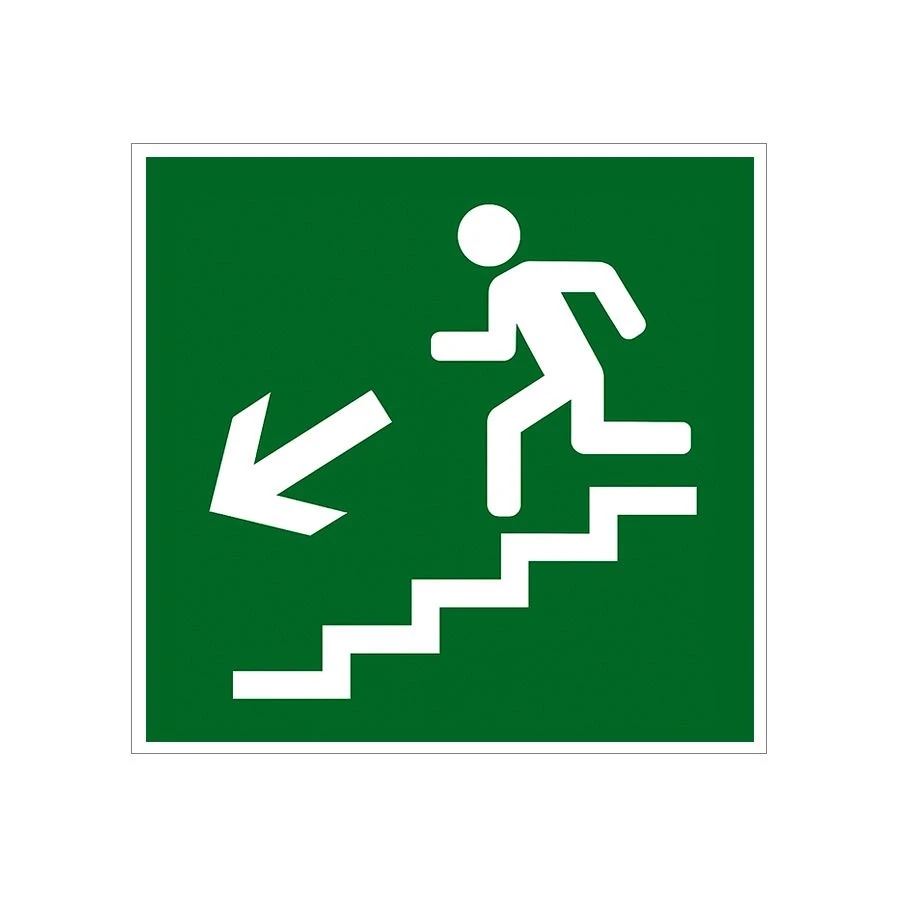 E14 Направление к эвакуационному выходу по лестнице вниз (налево), композит