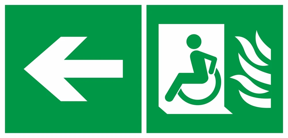 Эвакуационные пути для инвалидов (Выход там) налево, фотолюминесцентный