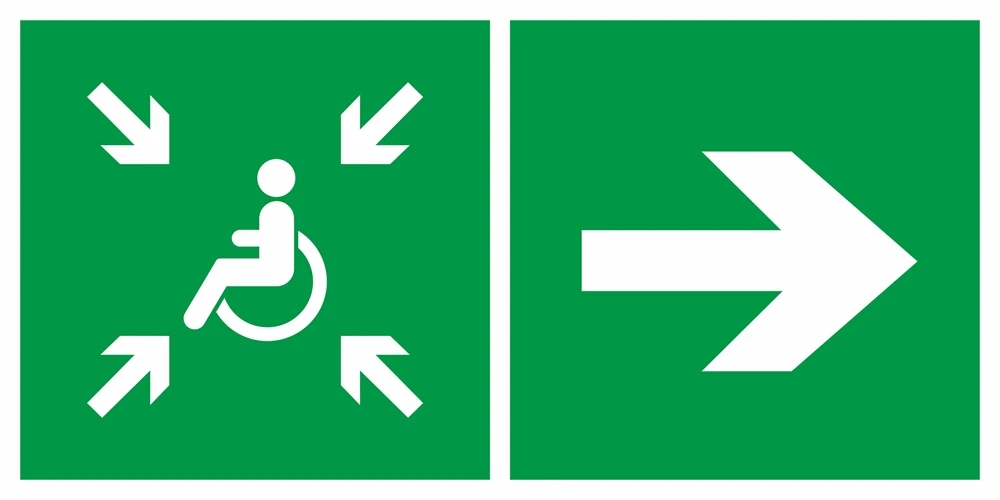 Знак устанавливается на путях эвакуации, указывая направление к пункту сбора для инвалидов. Он может быть размещен на стенах, дверях, или других конструкциях. Важно: Комбинированный знак "Пункт (место) сбора для инвалидов" применяется для обеспечения безопасности всех людей, включая маломобильные группы населения.