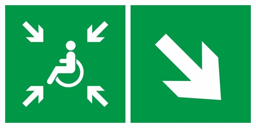 Направление движения к пункту (месту) сбора для инвалидов направо вниз, фотолюминесцентный