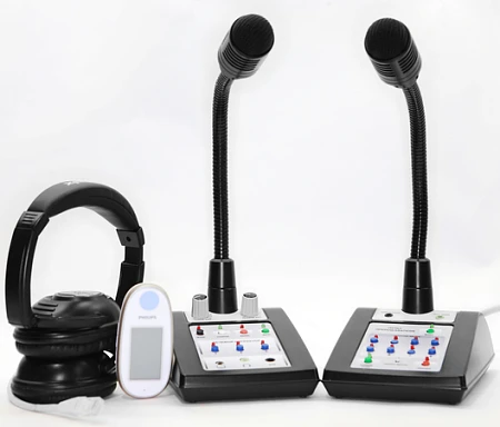 - Аудиокласс состоит из пульта преподавателя и нескольких пультов учеников, к которым подключаются слуховые аппараты или наушники. Все приборы аудиокласса соединены между собой кабелем связи.