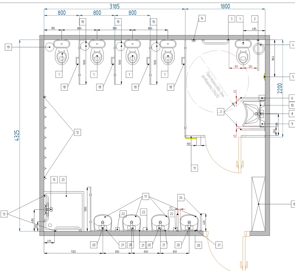 Наше решение - комплексный санузел для детей в ДОУ с кабиной для воспитателя и доступной кабиной для детей с инвалидностью включает в себя оборудование и готовое проектное решение по размещению.