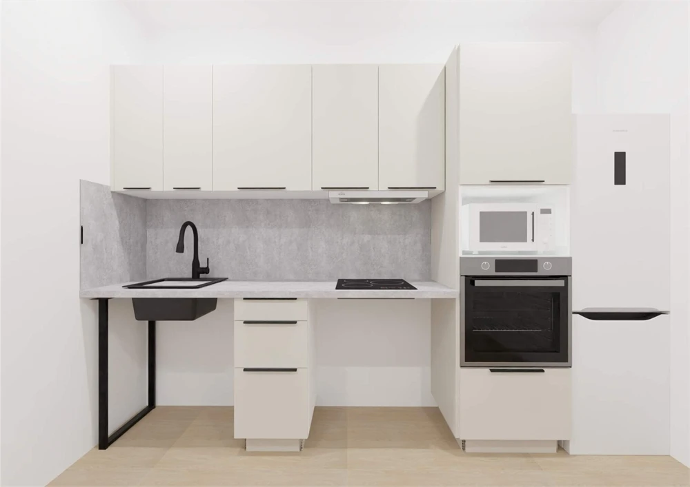 Готовый набор оборудования с адаптированным прямым кухонным гарнитуром для оснащения жилого модуля "Кухня"