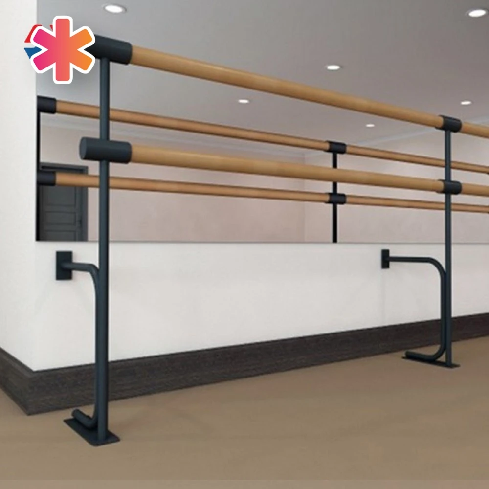 Двухуровневый балетный станок позволяет заниматься одновременно людям различного роста и возраста. Необходимость двухрядного станка вызвана тем, что на нём предполагаются занятия людей разных возрастов. Так дети будут держаться за нижний поручень, а взрослые – за верхний. Стандартная высота нижнего и верхнего уровня обычно в пределах 70 и 110 см соответственно.