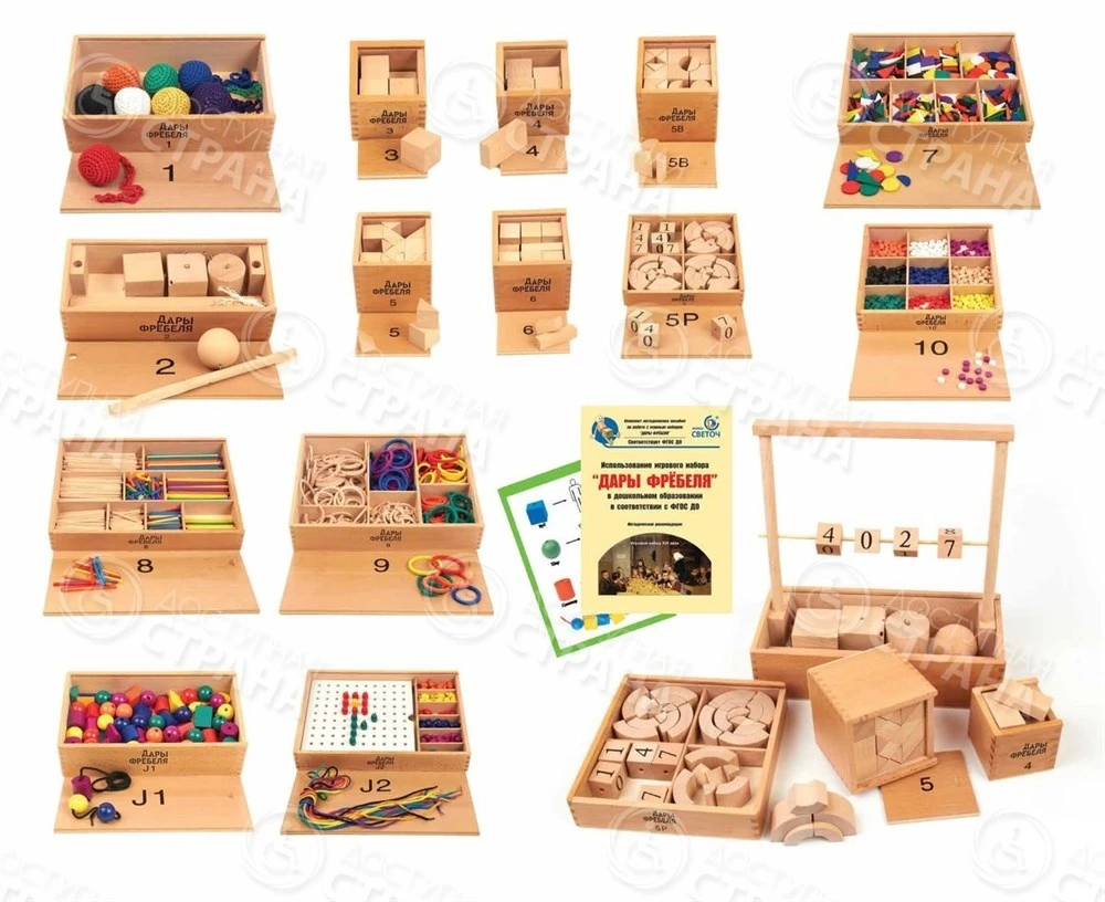 Игровой набор Фребеля способствует последовательному развитию ребенка с 6 месяцев до 10 лет. Игры разработаны на основании методик педагога Ф. Фребеля, прошедших проверку временем. Комплекс занятий соответствует программе