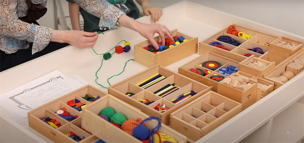 - В дошкольный период: развитие пространственного мышления, логики, внимания, совершенствование речи, формирование умения выполнять действия по образцу, изучение геометрических фигур, цветов.