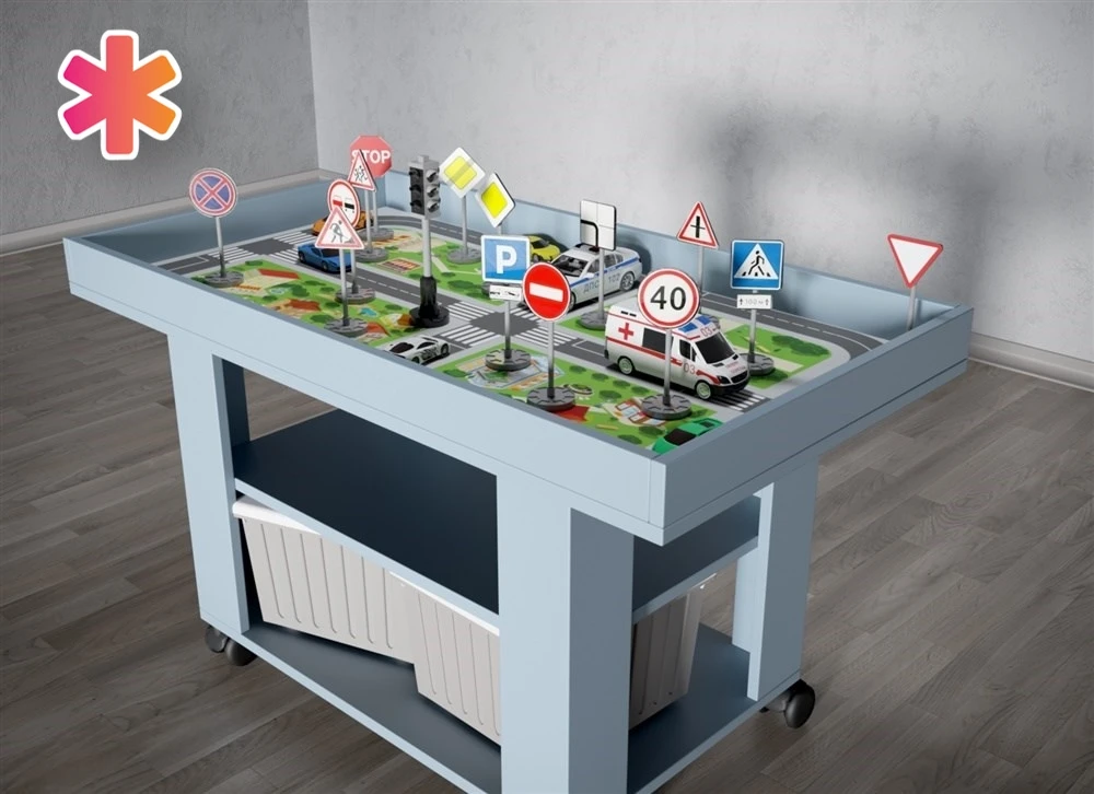 Игровой ландшафтный стол «Город» точно станет интересен не только детям, но и взрослым. На столешнице стола изображен самый настоящий город: с озером, торговым центром, дорогами, школой, парком и даже колесом обозрения. В комплекте идет конструктор, который поможет в занятиях и играх. Стол с таким отличным дополнением как конструктор помогут развить воображение ребенка. У этого стола высокие бортики, что позволит не переживать за потерю конструктора, а колесики на ножках помогут без труда его перемещать. Две полочки с ящиками создадут дополнительное место для хранения. С этим столом вашему ребенку точно будет интересно. Предназначен для детей от 3-х лет.