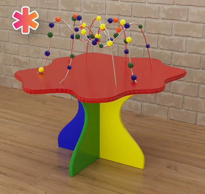 Дети могут весело играть, перемещая разноцветные шарики по металлическим направляющим в разные стороны или одновременно в разных направлениях, и развивая таким образом работу обоих полушарий головного мозга и мелкую моторику в формате непринуждённой игры. Детский игровой стол очень удобен для групповых и индивидуальных развивающих занятий с детьми.