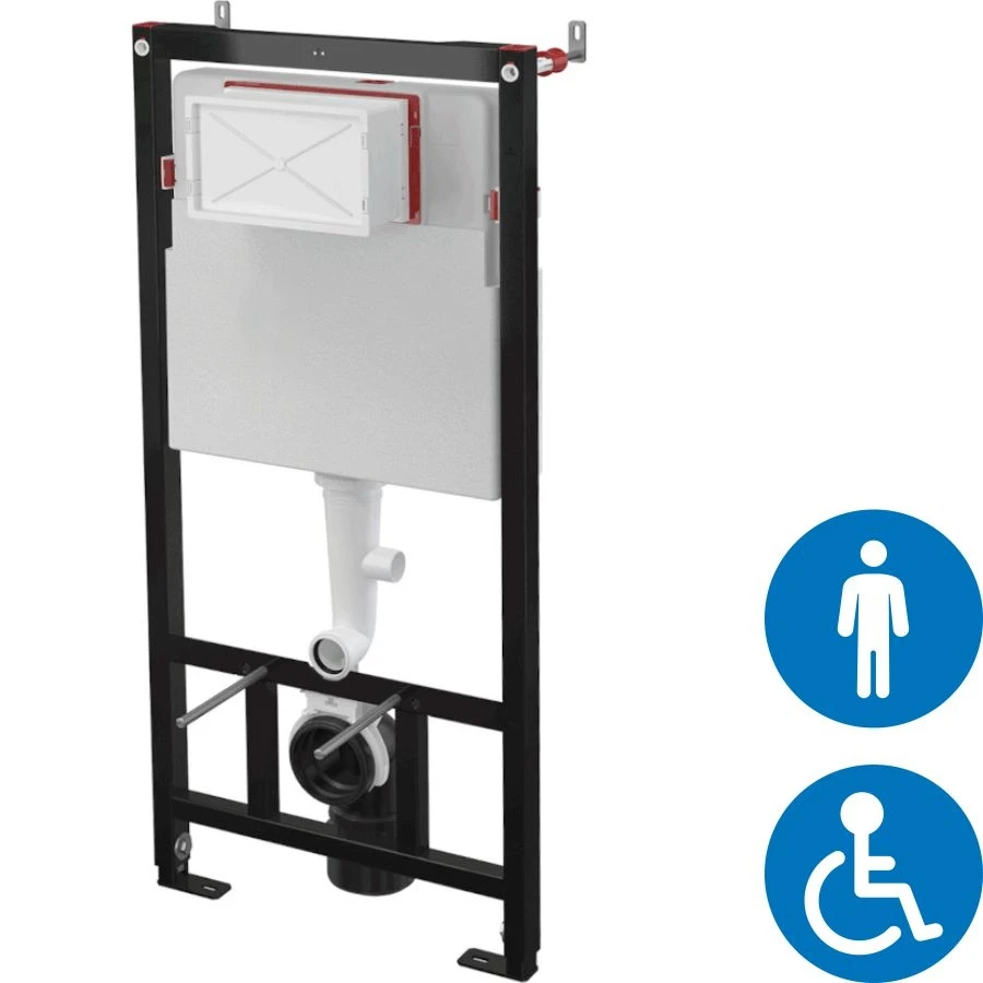 Данная система инсталляции предназначена для монтажа подвесного унитаза с межосевым расстоянием под крепёжные шпильки 180 или 230 мм. Рама устанавливается перед несущей стеной или в гипсокартонную конструкцию.