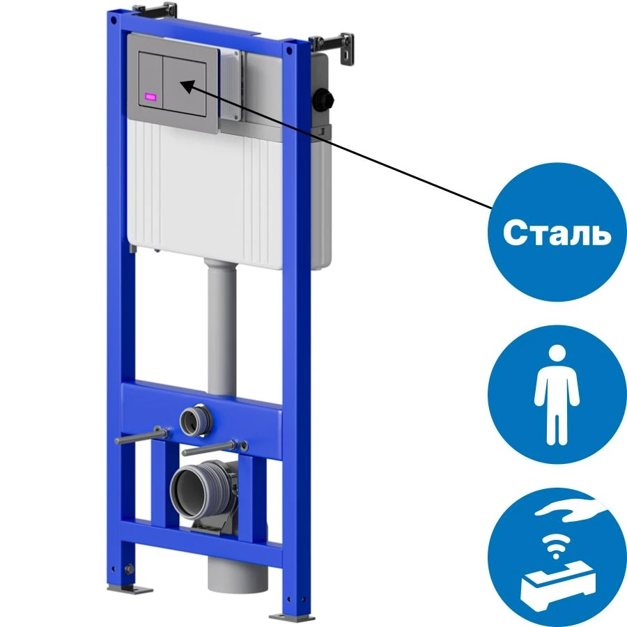 Инсталляция SANTEYA FRAME для подвесного унитаза SANTEYA UNITY с сенсорной кнопкой смыва из нержавеющей стали SANTEYA SENSOR