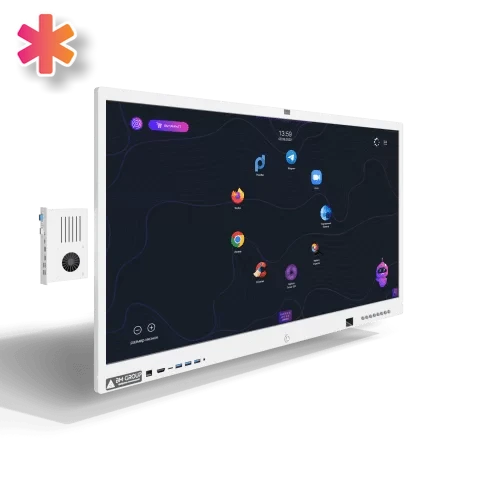 Многофункциональная панель в простом и современном дизайне не занимает много места, крепится на стену или на мобильную стойку на колесиках с фиксаторами. Это прекрасное решение для музеев, выставочных центров, образовательных учреждений (школ, колледжей, вузов и т.д.). Наша оболочка Aura работает с презентациями и всеми офисными приложениями.